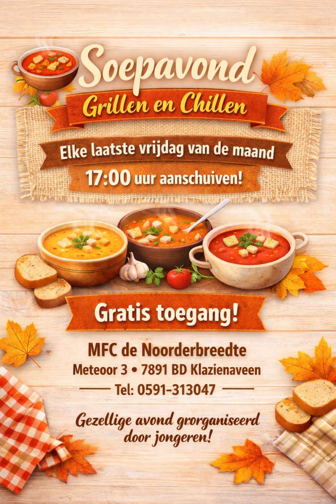 Elke laatste vrijdag van de maand organiseert "Grillen en Chillen" een soepavond!